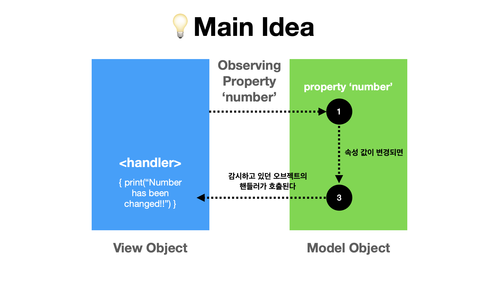 μ΄λ‘μ iOSμμ λ€λ₯Έ μ€λΈμ νΈμκ² κ°μ λ³κ²½μ μλ €μ£Όλ λ°©λ² μ€ νλμΈ KVOλ₯Ό λ€λ£¨μ΄ 보μμ΅λλ€.