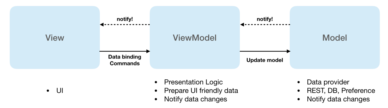 μλ₯Ό λ€μ΄ λͺ¨λΈ λ μ΄μ΄μμ κ°μ΄ λ³κ²½λλ©΄, κ°μνκ³ μλ λ·° λ μ΄μ΄μκ² μ λ¬λμ΄ λ³κ²½μ λμν μ μλ κ²μ λλ€.